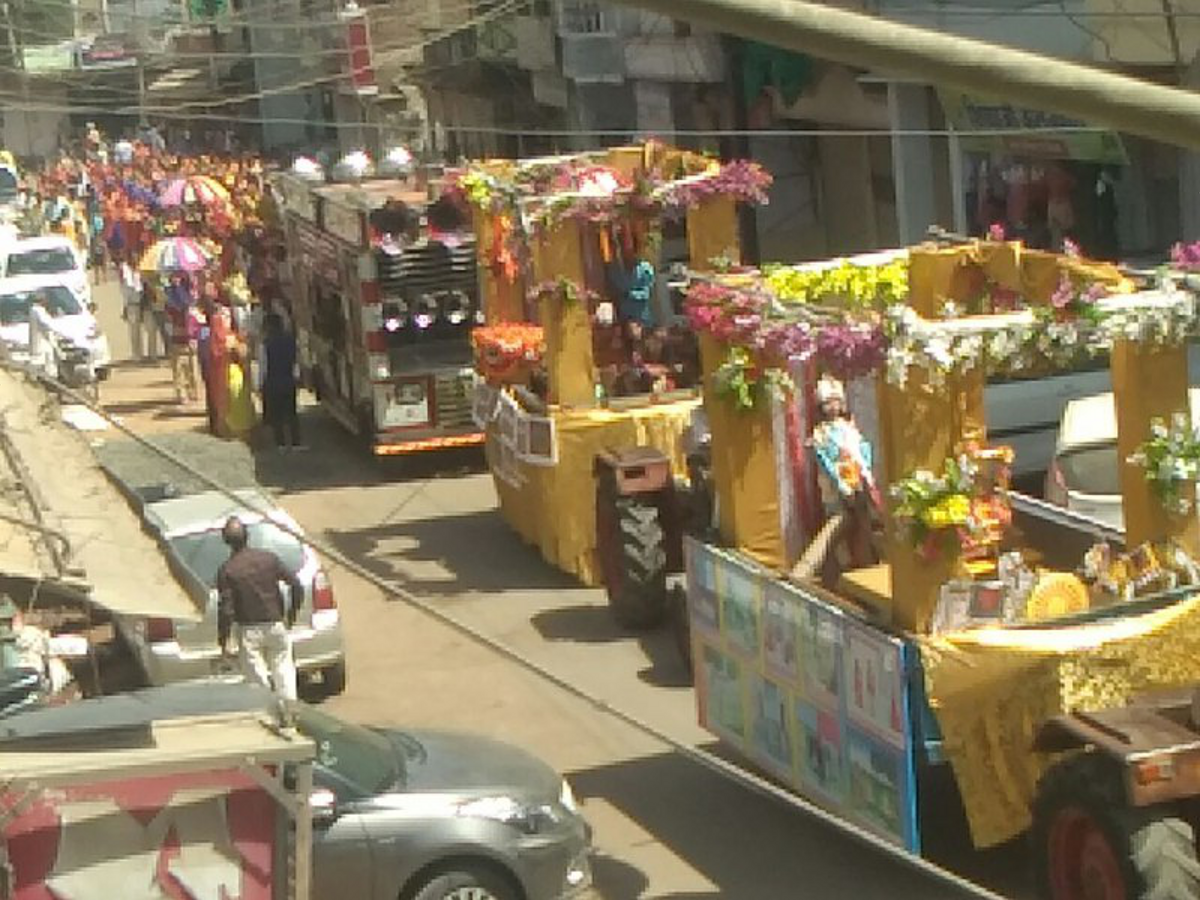 ढोल नगाड़ों के साथ निकली शोभायात्रा
