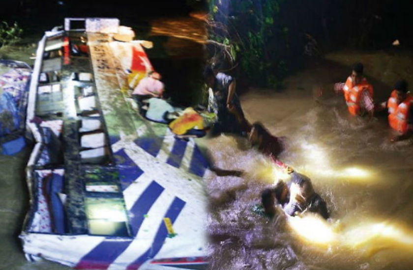 दर्दनाक हादसा: अनियंत्रित होकर 50 फीट नीचे नदी में गिरी बस, 6 की मौके पर ही मौत