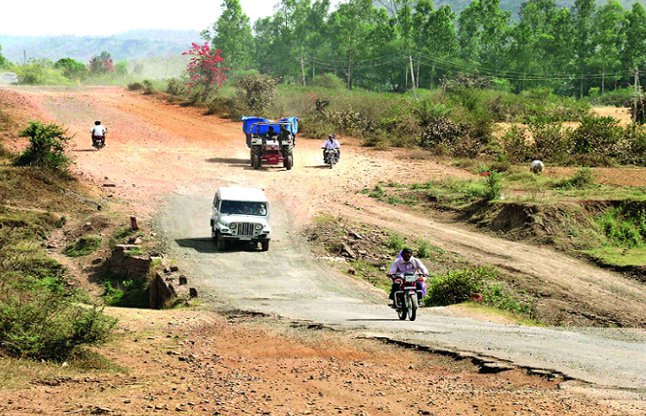 बीच जर्जर सड़क परेशानी का कारण बन रही है।
