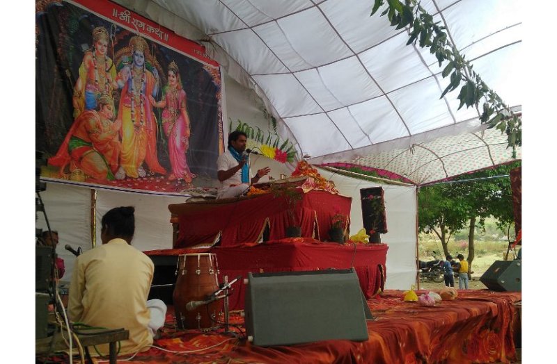 Sanchet. Spectacular Shriram Katha is being organized in the court of Mother Cholale, located at Khandera, on the holy festival of Navaratri. On Tuesday, the legendary Pandit Ramkrishna Maharaj recited the number of devotees present in hundreds of devotees of Ram birth. In the style of narrating their stories, the devotees woke up with devotion.
