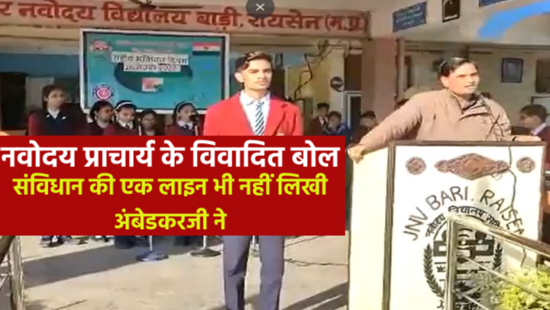 रायसेन. बाड़ी के नवोदय विद्यालय में हुए एक कार्यक्रम में प्राचार्य जितेंद्र कुमार मिश्रा के वक्तव्य से बवाल मच गया है. संविधान दिवस पर हुए कार्यक्रम में मिश्रा द्वारा दिए गए संबोधन का वीडियो तेजी से वायरल हो रहा है। इसमें मिश्रा यह कहते दिख रहे हैं कि बाबा भीमराव अंबेडकर ने भारत के संविधान की एक लाइन भी नहीं लिखी। उन्होंने आगे कहा है कि संविधान लिखने का काम प्रेम बिहारी नारायण रायजादा ने किया था, जिनकी हैंड राइटिंग बहुत अच्छी थी। प्राचार्य मिश्रा के इस वक्तव्य का वीडियो वायरल होने के बाद चर्चा का विषय बन गया। इतना ही नहीं, अब प्राचार्य मिश्रा को धमकियां भी मिल रही हैं।
