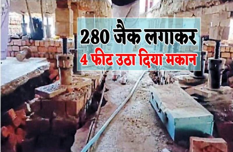 280 जैक लगाकर 4 फीट ऊंचा किया मकान