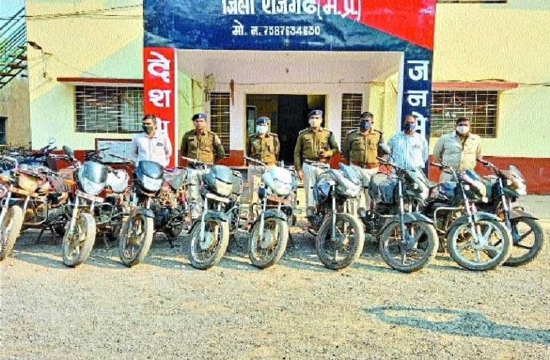 बाइक चोरियों का ख्यात स्पॉट बने ब्यावरा में लगभग हर दिन चोरी होना आम बात है। अब पुलिस ने ऐसे ही बाइक चोर गिरोह का पर्दाफाश किया है, उनके पास से 10 बाइकें बरामद की गई हैं। ऐसे तीन आरोपियों को गिरफ्तार किया है जो भोपाल, सीहोर, विदिशा सहित अन्य जगह से बाइक चुराकर ले आते थे।