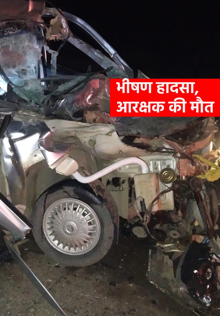 राजगढ़-ब्यावरा.अपहरण के मामले में आरोपी को पकड़ने पहुंची मलावर पुलिस की टीम हादसे का शिकार हो गई। आधी रात को हुए हादसे में उनकी कार आगे जा रहे किसी वाहन से टकरा गई, जिससे उसमें सवार आरक्षक की मौके पर ही मौत हो गई। वहीं, टीआई और चालक गंभीर रूप से घायल हो गए।