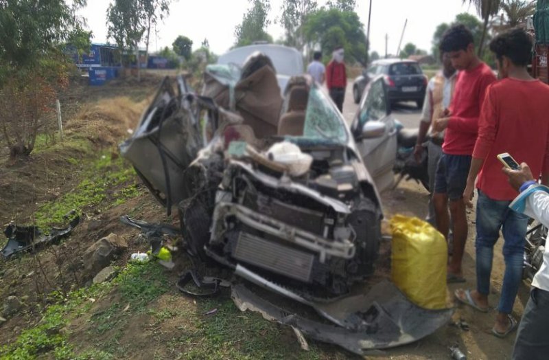 खड़े ट्रक में घुसी कार, दो बच्चों सहित चार की मौत