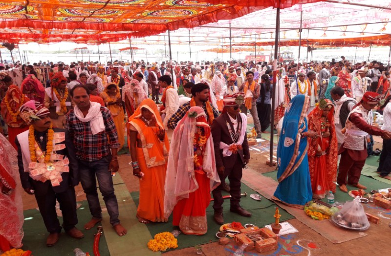 राजगढ़। मुख्यमंत्री कन्यादान योजना के तहत शुक्रवार को स्टेडियम परिसर में सामुहिक विवाह सम्मेलन का आयोजन का हुआ जिसमें जिलेभर से ५१ जोड़ो ने एक दूसरे का हाथ थामा। प्रशासन द्वारा आयोजित इस विवाह सम्मेलन में जहां वरवधु ने वैदिक मंत्रोचार के बीच सुखद दामपत्य की शुरूआत की, वहीं स्वास्थ विभाग की पहल पर परिवार नियोजन का भी संकल्प विवाह वेदी पर ले लिया। आयोजन के लिए जिलेभर के ५२ जोडो ने पंजीयन करवाया था, लेकिन इनमें से ५१ जोड़े ही सम्मेलन में शामिल हुए। सम्मेलन की शुरूआत सुबह करीब ११ बजे से जोड़ो के वेरीफिकेशन के साथ हो गई थी।