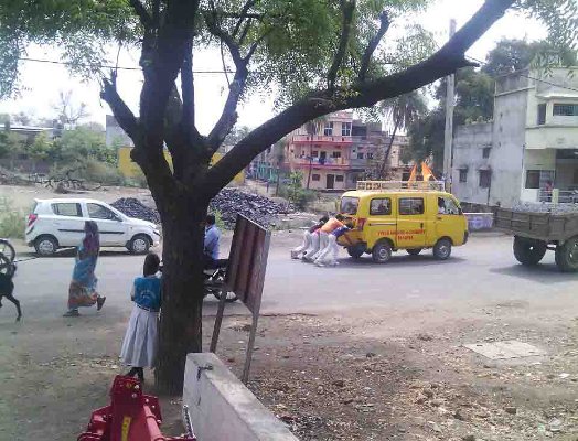 शनिवार को शहर के विवेकानंद अकेडमी की बड़ी लापरवाही सामने आई। एबी रोड पर बांडी खाली के पास स्कूल वाहन खराब होने की दशा में ड्राइवर ने स्कूल के छोटे-छोटे बच्चों से ही धक्का लगवा दिया। बच्चे भरी दोपहरी में धक्का लगाते रहे और ड्राइवर गाड़ी में बैठे-बैठे धक्का लगवाता रहा। खास बात यह है कि पांचवीं, छठवीं और सातवीं के छोटे-छोटे बच्चों से ड्राइवर ने भरी दोपहरी में गाड़ी को धक्का लगवाया। उल्लेखनीय है कि निजी स्कूल के वाहनों में ओवरलोडिंग, ठूंस-ठूंसकर बच्चों को बैठाना आम बात हो गई है। बावजूद इसके प्रशासन का शिकंजा इन पर नहीं चल पाता।