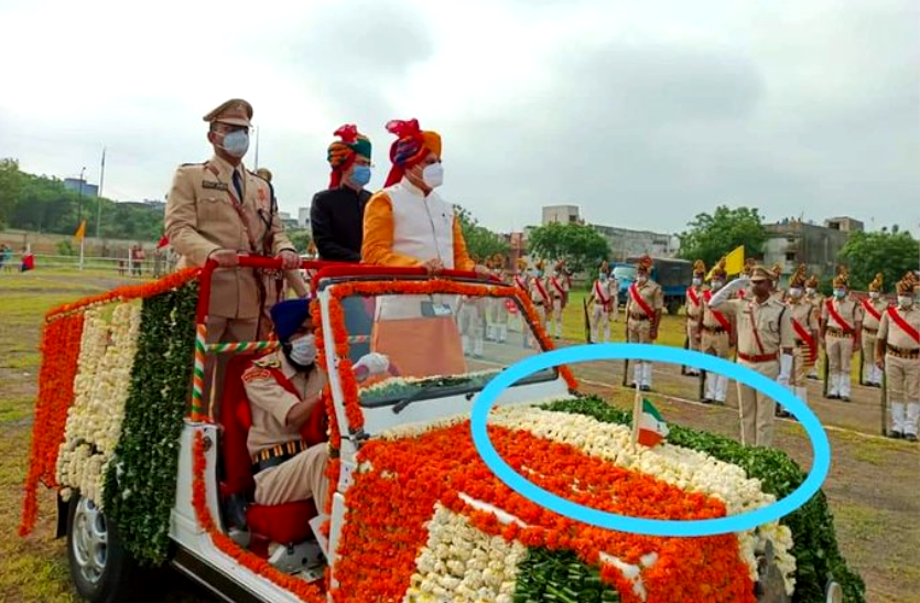 15 अगस्त स्वतंत्रता दिवस के मौके पर मुख्य समारोह पुलिस परेड ग्राउंड पर रखा गया था। कार्यक्रम के दौरान परेड के निरीक्षण के लिए जिस चार पहिया वाहन को सजाया गया था। जिम्मेदारों ने उस वाहन को सजाते हुए उसपर तिरंगा भी लगाया गया था, लेकिन खास बात ये कि उस गाड़ी पर जो तिरंगा लगा था, वो उल्टा था। तिरंगे का केसरिया रंग सबसे ऊपर होने की बजाए सबसे नीचे नजर आ रहा था।
