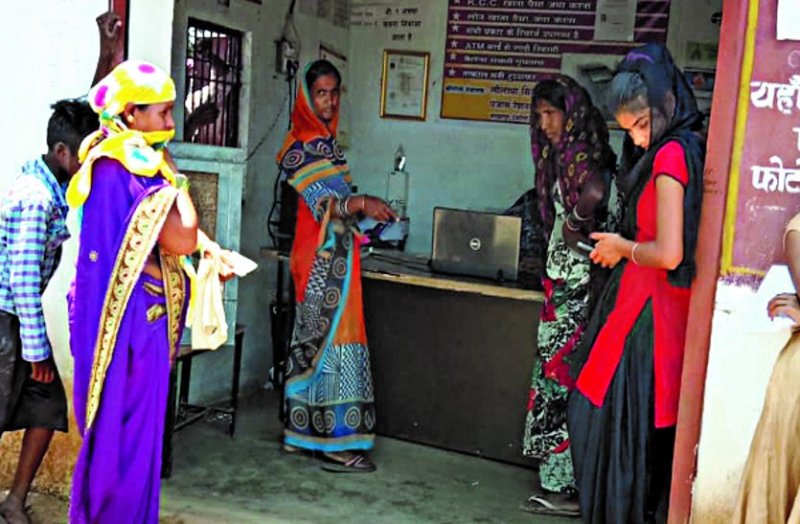 मदद... लोगों के खाते में आए राशि को घर पहुंचाकर दे रहे बैंक मित्र।