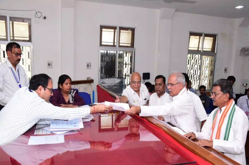 Former CM Bhupesh Baghel filed nomination: छत्तीसगढ़ के पूर्व मुख्यमंत्री भूपेश बघेल ने राजनांदगांव लोकसभा सीट से बतौर कांग्रेस प्रत्याशी आज नामांकन दाखिल किया है। इस दौरान कलेक्ट्रेट में भूपेश बघेल के साथ नेता प्रतिपक्ष डॉ. चरणदास महंत, विधायक भोलाराम साहू आदि उपस्थित रहे।