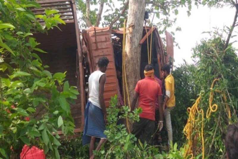 CG Accident: वाहन तेज रफ्तार में अनियंत्रित होने के चलते पहले पेड़ से टकराया फिर खाई की ओर पलट गया। पुलिस के अनुसार बालोद जिला के भरदाकला व बोडेना गांव के 10-12 मजदूर मालवाहक में तेंदूपत्ता भरने खैरागढ़ जिले के बकरकट्टा आ रहे थे। छिंदारी जलाशय के पास तेज रफ्तार मालवाहक अनियंत्रित हो गया और पेड़ से टकरा कर खाई में गिर गया।