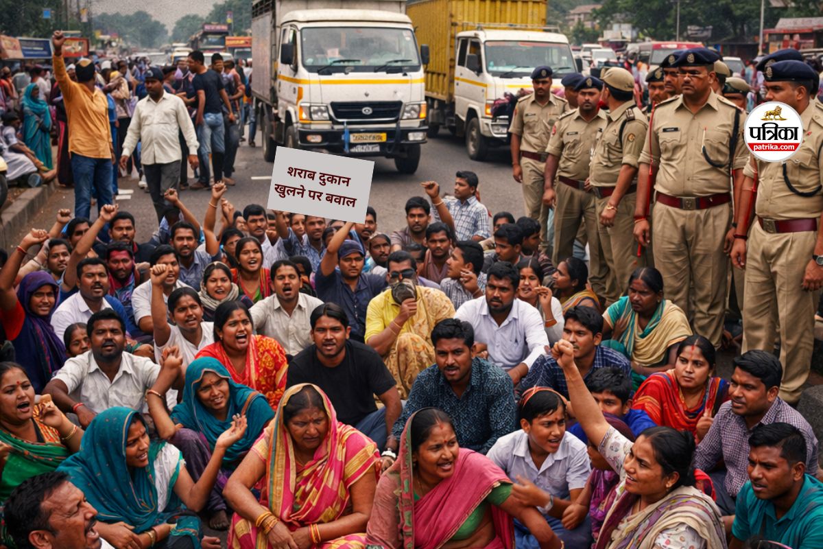 शराब दुकान खुलने पर बवाल! मोहारा वार्ड के लोगों ने सड़क जाम कर किया जोरदार विरोध, जानें पूरा मामला...(photo-patrika)