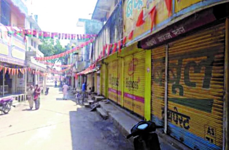 डोंगरगढ़... बंद के दौरान बाजार में पसरा रहा सन्नाटा।