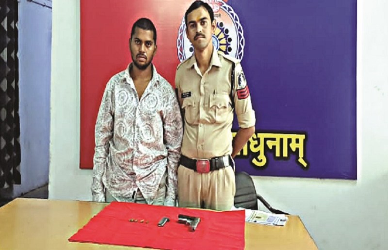 पुलिस से मिली जानकारी के अनुसार गणेश पर्व व आगामी विधानसभा निर्वाचन के मद्देनजर शांति पूर्ण चुनाव संपन्न कराने के अलावा शांति व्यवस्था बनाए रखने की दृष्टि से असामाजिक तत्वों के खिलाफ चलाए जा रहे अभियान के तहत गुरुवार को टाउन पेट्रोलिंग के दौरान मुखबिर से सूचना मिली कि एक आरोपी स्टेट स्कूल के पास पिस्टल लेकर घूम रहा है।