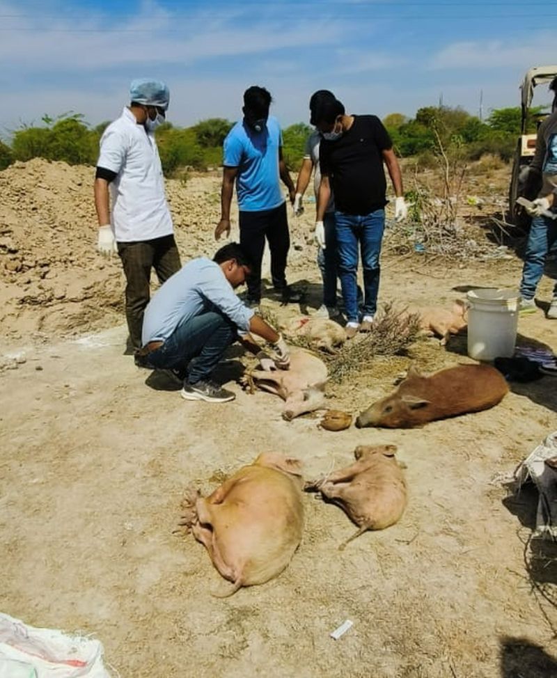 राजसमंद के गिलूण्ड में शूकरों को यूथेनेसिया प्रक्रिया के तहत इंजेक्शन लगाते चिकित्सक।