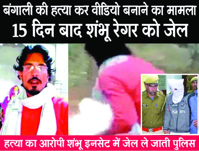 राजसमंद. बंगाली चुनाई ठेकेदार की नृशंस हत्या कर घटना का वीडिया बनाने के मामले में पुलिस रिमांड पर चल रहे आरोपी शंभूलाल रेगर को जेल भेज दिया गया। आरोपित 15 दिन तक राजनगर थाने में पुलिस रिमांड पर रहा है, जिससे हत्या को लेकर समग्र पहलुओं से गहन पूछताछ की गई। साथ ही घटना स्थल की भी तस्दीक कराई गई। राजनगर थाना प्रभारी रामसुमेर मीणा ने बताया कि 6 दिसंबर को सैय्यदपुर, जिला मालदा, पश्चिम बंगाल हाल धोइंदा, राजसमंद निवासी अफराजुल उर्फ गुट्टू की निर्मम हत्या कर लाइव वीडियो बनाने के मामले में राजनगर थाना पुलिस की रिमांड पर चल रहे आरोपित रेगर मोहल्ला राजनगर निवासी शंभूलाल रेगर को शुक्रवार शाम मुख्य न्यायिक मजिस्ट्रेट राजसमंद के समक्ष पेश किया। न्यायाधीश ने आरोपी शंभूलाल रेगर को न्यायिक अभिरक्षा में भेज दिया। बाद में कड़े पुलिस में उसे जिला कारागृह राजसमंद ले जाया गया। फिर देर रात तक सुरक्षा व्यवस्था के लिहाज से हत्या के आरोपी शंभू को अन्य जेल में शिफ्ट करने को लेकर जेल, पुलिस व प्रशासनिक अधिकारियों के बीच विचार विमर्श चलता रहा।