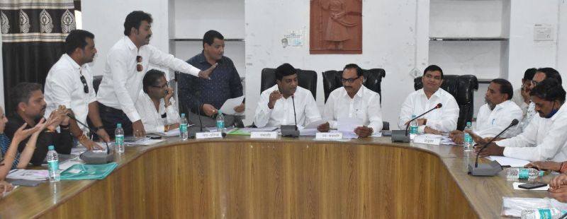 नगर परिषद की साधारण सभा नगर परिषद सभापति अशोक टांक की अध्यक्षता में शुरू हुई। सभापति ने वित्तीय वर्ष 2023-2024 के बजट को पढ़ा। इसके बाद नेता प्रतिपक्ष हिम्मत कुमावत ने कहा कि साधारण सभा का एजेंडा 17 फरवरी को जारी हुआ, इसके बावजूद हमें 22-23 फरवरी को मिला है। ऐसे में हम इसे पूरी तरह से पढ़ भी नहीं पाए हैं। उन्होंने सभापति को चुनौती देते हुए कहा कि बजट में आपने क्या देखा है उसे बताएं। आपको जो अधिकारियों ने बजट लिखकर दिया है उसे पढ़ रहे हैं। इस दौरान भाजपा-कांग्रेस समर्थित पार्षदों के बीच तकरार हो गई। इस पर उपसभापति चुन्नीलाल साहू ने मामला शांत कराया। बैठक में शामिल विभिन्न चौराहा एवं सड़कों का नामकरण एवं मूर्ति स्थापना पर विचार-विमर्श के मुद्दों पर नेता प्रतिपक्ष कुमावत, पार्षद मोहन कुमावत और दीपक शर्मा ने कहा कि चौराहा का नामकरण पहले ही हो चुका है। उन्हें बदलकर चहेतों को खुश करना चाह रहे हैं। इस बात को लेकर हंगामा हो गया। इससे आक्रोशित भाजपा समर्थित पार्षदों ने बोर्ड बैठक का बहिष्कार कर दिया और सभाकक्ष के बाहर धरने पर बैठ गए। हंगामे के बीच सभापति अशोक टांक एजेंडे में शामिल बिन्दुओं को पढ़ते रहे और कांग्रेस समर्थित पार्षद मेज थपथपाकर उसका समर्थन करते रहे। इसके बाद सभापति ने साधारण सभा समाप्ति की घोषणा कर दी। उल्लेखनीय है कि वर्तमान बोर्ड में कांग्रेस के पार्षद 27, 8 मनोनीत पार्षद और भाजपा के 18 पार्षद है। पिछले साल 27 फरवरी 2022 को बजट बैठक में भी जमकर हंगामा हुआ था।
