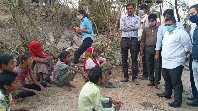गोयाला बस्ती में रोगग्रस्त बच्चों से बात करते जिला कलक्टर