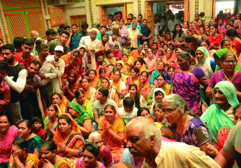 नाथद्वारा. आराध्य प्रभु श्रीनाथजी मंदिर में बुधवार से अधिक मास के श्रीगणेश के साथ ही विविध मनोरथ के दर्शन का सैकड़ों श्रद्धालुओं ने लाभ लिया। इसमें सायंकाल के समय खासी रेलमपेल रही। प्रभु श्रीनाथजी को अधिक मास के अवसर पर वस्त्र सेवा में केसरी धोती पटका एवं श्रीमस्तक पर केसरी रंग के कुल्हे पर पंख चन्द्रिका की जोड़ एवं शीशफूल श्रीकर्ण में मोती के कुंडल आदि सुशोभित कराये गए। वहीं, अधिकमास के मनोरथ के अन्तर्गत राजभोग की झांकी के समय साहिबान की मंडली धराई गई। जबकि, सायंकाल भोग आरती की झांकी के समय सांझी के मनोरथ के अवसर पर श्रीजी बावा के संमुख मणिकोठा में फूलों से अलौकिक सांझी का अंकन किया गया। इसी प्रकार निधि स्वरूप लाड़ले लालन को भी श्रीजी के अनुरूप राजभोग में मंडली एवं सायंकाल भोग आरती में निज मंदिर के बाहर अलौकिक सांझी धराई गई। वहीं, कीर्तनकारों ने भी विशेष कीर्तन के गान किए ।