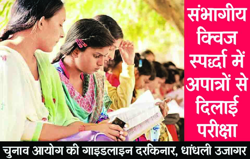 राजसमंद. चुनाव आयोग की ओर से उदयपुर के राबाउमावि रेजीडेंसी में आयोजित संभाग स्तरीय क्विज प्रतियोगिता में गाइडलाइन के विरुद्ध बांसवाड़ा के दो छात्रों को शामिल कर लिया। प्रतियोगिता में बांसवाड़ा के छात्र ही अव्वल रहे, जो अब राज्य स्तरीय प्रतियोगिता में भी भाग नहीं ले सकेंगे। इस पर राजसमंद प्रशासन ने भी मुख्य चुनाव आयोग को शिकायत भेजी है।
