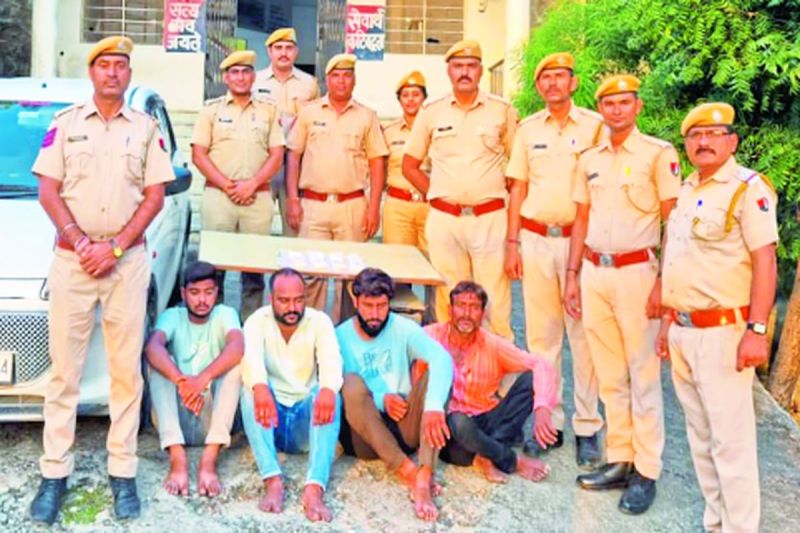 थानाधिकारी ओमसिंह चुंडावत ने बताया कि पुलिस अधीक्षक के आदेश पर तीन टीमों का गठन किया गया। इसमें गाड़ी नंबर से गाड़ी मालिक का पता लगाकर थाने से एक टीम को भेजकर आरोपियों को घर से गिरफ्तार किया गया। इनमें आरोपी खारंडिया निवासी गणपत सिंह राजपूत, कोरना का वाडा थाना राजनगर निवासी सुरेन्द्र गुर्जर, तासोल निवासी भैरूदास वैष्णव व पप्पू जाट को गिरफ्तार कर लिया। जबकि, एक आरोपी फरार हो गया। पुलिस ने आरोपियों के कब्जे से एक कार व 4 चाकू बरामद किए हैं। बताया गया कि आरोपी रात को शराब के नशे में वाहन चालकों को परेशान करते हुए चाकू दिखाकर डरा रहे थे। यह वीडियो सोशल मीडिया पर वायरल हो गए। वीडियो में वाहन चालक एवं आगे की सीट पर बैठा युवक चाकू और एक अन्य हथियार दिखाते हुए दिखाई दे रहे हैं। इस पर पुलिस ने तुरंत कार्रवाई करते हुए आरोपियों को गिरफ्तार कर लिया।