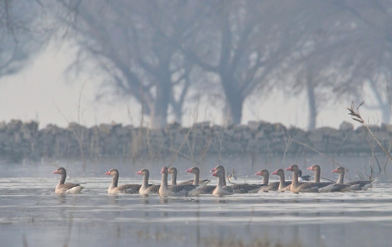 ग्रे लेग गूज, पेलिकन, नॉर्दन पिंटेल, कोंबडक, सैंडपाइपर, कॉमन कूट, ओपन बिल स्टॉक जैसे पक्षी झील किनारे अटखेलियां करते नजर आ रहे हैं। इसमें ग्रे लेग गूज लम्बी दूरी तयकर आया है। मुख्य रूप से ये पक्षी सेंट्रल एसिया, यूरोप और ठंडे प्रदेशों से आते हैं। पक्षी बहुत ही आकर्षक होता है। गे्र लेग गूज गोल व भारी शरीर वाला बड़ी बतख है। इसकी चोंच व पैरों का रंग सुर्ख गुलाबी तथा पूछ का रंग सफेद व काला होता है। इसका शरीर सिलेटी रंग का होता है और इसके पैरों में काली रेखाएं होती हैं। यह अक्सर समूह में रहता है, और विशेष प्रकार की आवाज करते हुए जल क्रीडा करता है।