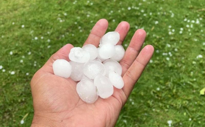 शहर में शनिवार शाम हुई बारिश के दौरान गिले ओले। नाथद्वारा