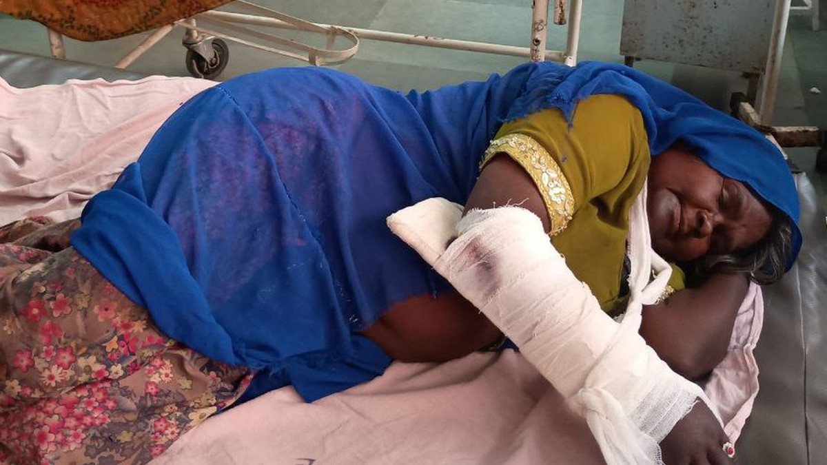 अस्पताल में उपचाररत पीड़ित महिला। फोटो पत्रिका
