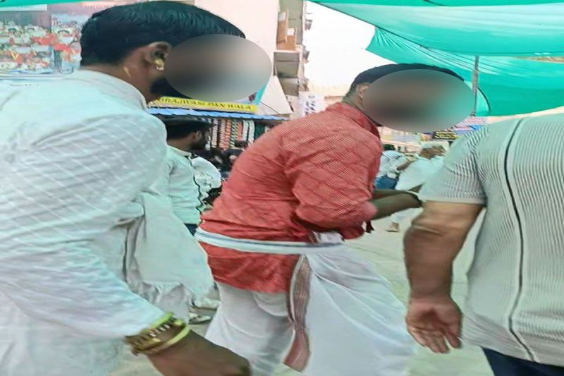 राजसमंद. श्रीनाथजी मंदिर में लपका गिरोह के सदस्य श्रद्धालु से बातचीत करते