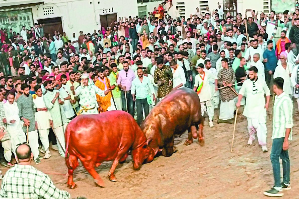 नाथद्वारा स्थित शनिवार को आराध्य प्रभु श्रीनाथजी मंदिर की नाथूवास िस्थत मुख्य गोशाला में पाड़ों- बिजारों का प्रदर्शन किया गया। इस अवसर पर तिलकायत पुत्र विशाल बावा एवं उनके पुत्र लाल बावा भी उपस्थित हुए। गोशाला में देर शाम हेड ग्वाल मनोज गुर्जर खिलाड़ी के नेतृत्व में शुरुआत में ग्वाल-बालों ने विभिन्न खेलनी गोमाताओं को खूब रिझाया। इसके बाद यहां रहने वाले बिजारों एवं पाड़ों का प्रदर्शन किया गया। इसमें एक-एक करके पाड़ों और बिजारों को बाहर लाया गया, जिनका प्रदर्शन देखते दर्शनार्थियों ने खूब गिरिराज धरण के जयकारे लगाते हुए माहौल को भक्तिमय कर दिया। इस अवसर पर तिलकायत पुत्र विशाल बावा एवं लाल गोविंद बावा ने गोमाता का पूजन किया। पाड़ों-बिजारों का प्रदर्शन देखने के लिए स्थानीय के साथ ही आसपास के क्षेत्र से तथा गुजराजी वैष्णव सैंकड़ों की संख्या में पहुंचे। वैष्णवों ने गोशाला परिसर में जगह नहीं मिलने पर छतों पर चढकऱ प्रदर्शन को देखा। मंदिर मंडल के मुख्य निष्पादन अधिकारी चेतन कुमार त्रिपाठी, तिलकायत सचिव लीलाधर पुरोहित, श्रीकृष्ण भंडार के अधिकारी सुधाकर उपाध्याय, अंजन शाह, सहायक अधिकारी अनिल सनाढ्य, कीर्तनिया गली के जमादार हर्ष सनाढ्य, समाधानी उमंग मेहता, कल्पित जोशी ने व्यवस्थाओं में सहयेाग किया।