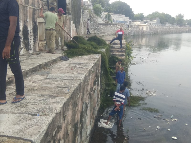 राजसमंद झील में बिपरजॉय तूफान के तहत हुई बारिश और मानसून की बारिश के चलते गोमती नदी से झील में पानी की लगातार आवक बनी हुई है। पानी के साथ बहकर आई और झील में पहले से जमा जलीय वनस्पति और गंदगी अब झील के किनारों पर आ गई है। इसके कारण इरिगेशन पाल के आस-पास पानी में गंदगी साफ दिखाई दे रही है। इसके कारण झील के पानी में भी बदबू आने लगी है। इस पर राजस्थान पत्रिका के अंक में ‘झील कर रहे दूषित, साबुन से नहा रहे और गंदगी भी पानी में’ शीषर्क से समाचार प्रकाशित किया। इसमें बताया कि कुछ लोग झील में साबुन से नहाकर पानी को दूषित कर रहे हैं, जबकि झील के पानी में जमा गंदगी के कारण जलीय जीव-जंतुओं को नुकसान हो सकता है। इस पर चंचल नंदवाना की पहल पर शनिवार को सुबह करीब 6.30 बजे से टीम झील से गंदगी निकलाने में जुट गई। नगर परिषद के कर्मचारियों ने झील के किनारे पर जमा जलीय वनस्पति, पानी की खाली बोतल, नमकीन-चिप्स के पैकेट सहित तैर रही गंदगी को बाहर निकाला गया। अब उसके सूखने पर उसे ट्रेक्टर ट्रॉली आदि में भरवाकर वहां से हटवाया जाएगा। उल्लेखनीय है कि सार्वजनिक निर्माण विभाग के ऑफिस की दीवार के पास बनी पाल से लेकर छतरियों तक पानी में गंदगी जमा हो गई है।