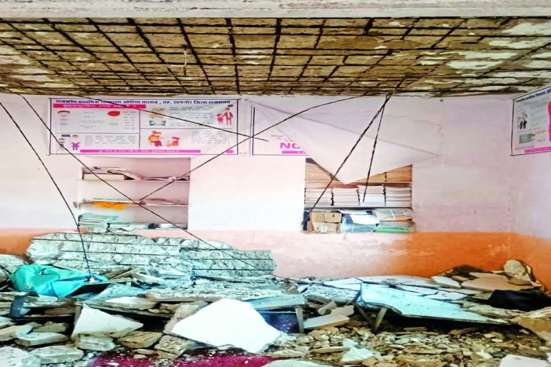 कमरे में जहां बच्चे बैठे थे, उससे कुछ फीट की दूरी पर छत का प्लस्तर टूटकर गिरा। उसमें से उछले गिट्टी के कंकरों से तीन-चार बच्चों को हल्की-फुल्की चोटें आईं। गनीमत रही कि आधी छत का प्लस्तर ही टूटा और वह भी सीधा बच्चों पर नहीं गिरा। छत का टूटता प्लस्तर बीच में लगे लोहे के गार्डर तक आकर रुक गया। उघड़ता प्लस्तर यदि गार्डर से आगे बढ़ता तो हादसे का मंजर कल्पना से परे हो सकता था। क्योंकि फिर कमरे का कोई भी हिस्सा ऐसा नहीं बचता जहां मलबे का ढेर नहीं लगा होता।