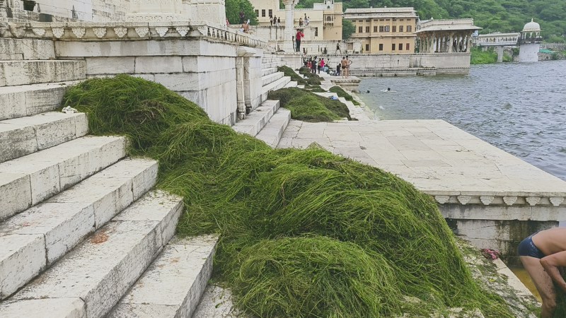 बिपरजॉय तूफान और मानसून की बारिश के कारण गोमती नदी और खारी फीडर के माध्यम से राजसमंद झील (Rajsamand Lake) में पानी की अच्छी आवक हो रही है। झील का जलस्तर करीब 21 फीट पहुंच गया है। ऐसे में झील में नहाने और तैराकी करने वालों की संख्या भी काफी बढ़ गई है। हर आयुवर्ग के पुरुष और महिलाएं भी इसमें पीछे नहीं है। ऐसे में झील में पानी के साथ बहकर आई जलीय वनस्पति से हमेशा हादसा होने का अंदेशा बना रहता था। इससे बचाव के लिए रविवार को कुछ युवकों ने इसे झील से बाहर निकालने का काम शुरू किया। उन्होंने अपनी क्षमता के अनुसार जलीय घास को बाहर निकालकर सीढिय़ों पर एकत्र किया। उन्हें यह कार्य करते देख कुछ लोग और इस कार्य में जुट गए। रविवार को दोपहर तक कई क्विंटल जलीय वनस्पति को निकालकर बाहर निकाल दिया। इस काम में जुटे मेहमूद खान, देवेन्द्र सिंह राव और उनके पुत्र विश्वजीत राव इसमें जुटे दिखाई दिए। उन्होंने बताया कि इस घास में फंसने से किसी भी मौत हो सकती है। इससे बचाव के लिए इसे बाहर निकाली जा रही है। इसमें विश्वजीत 12 वीं कक्षा में अध्यनरत है। यह तीनों ही अच्छे तैराक है।