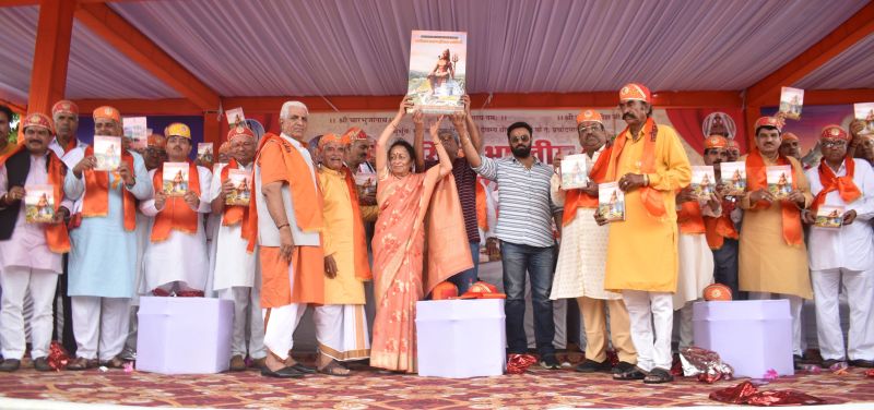 राजसमंद के द्वारकेश वाटिका में आयोजित कार्यक्रम में पुस्तक का विमोचन करते अतिथि