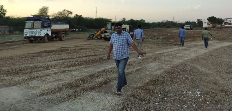 प्रधानमंत्री के दौरे को लेकर हेलीपेड पर चल रहा कार्य। नाथद्वारा