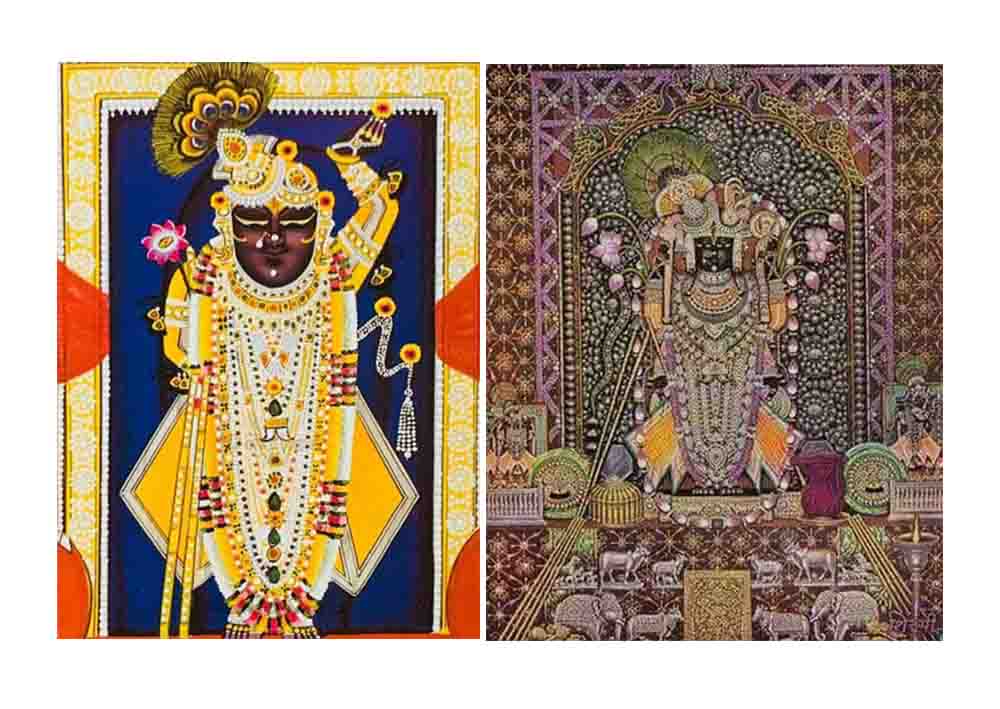 विशेष शृंगार धराया - श्रीजी में आज विशेष उत्सव के अवसर पर धराए शृंगार में वस्त्र सेवा केसरी रंग की जामदानी की रुपहली जऱी की तुईलैस से सुसज्जित चाकदार एवं चोली धराई गई। लाल रंग के सुनहरी छापे का सूथन, लाल रंग का पीतांबर चौखटे के ऊपर धराया गया। श्रीमस्तक पर केसरी रंग की सिरपैंच में पांच मोरपंख की चन्द्रिका की जोड़ एवं बायीं ओर जमाव का शीशफूल धराए गए। श्रीकर्ण में मकराकृति कुंडल बायीं ओर माणक की चोटीजी एवं इसी प्रकार ठाड़े वस्त्र मेघश्याम रंग के एवं लाल दरियाई की बड़े लप्पा की सुनहरी जऱी की तुईलैस के हांशिया किनारी वाली पिछवाई धराई। आभूषण सेवा में श्रीजी बावा को हीरा पन्ना माणक मोती आदि नवरत्नों से जडि़त सोने के आभूषण सुशोभित कराए गए। स्वर्ण की रत्नजडि़त चरणचौकी एवं वनमाला चरणारविन्द तक धराई गई। शृंगार दर्शन में श्रीजी को तिलक, अक्षत किया गया भेंट रखी गई तथा शंख झालर घंटा आदि बजाए गए।