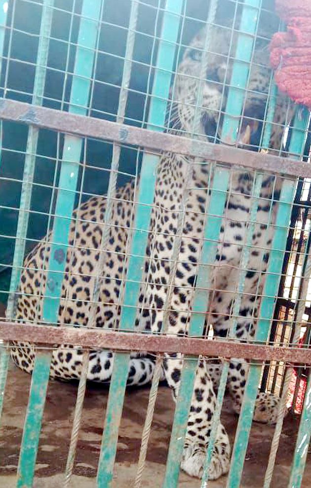 पुलिया में दुबककर बैठे पैंथर को रेस्क्यू करके पुलिया से बाहर निकलते हुए तथा पिंजरे में गुर्राता पैंथर।