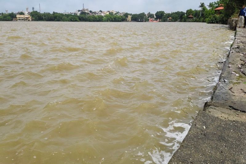 राजसमंद. बारिश की बौछारों ने देवगढ़ इलाके के तालाबों और बांधों को जैसे नया जीवन दे दिया है। नगर का दिल कहे जाने वाला राघव सागर तालाब अब पानी से लबालब हो चुका है। हवाओं की मस्ती के साथ इसकी रपट से पानी उफन कर दूसरी तरफ छलकने लगा है। आसपास के गांवों के लोग इस नजारे को देखने उमड़पड़े हैं। तालाब में जैसे ही एक फीट और पानी आया, ओवरफ्लो तय है!
