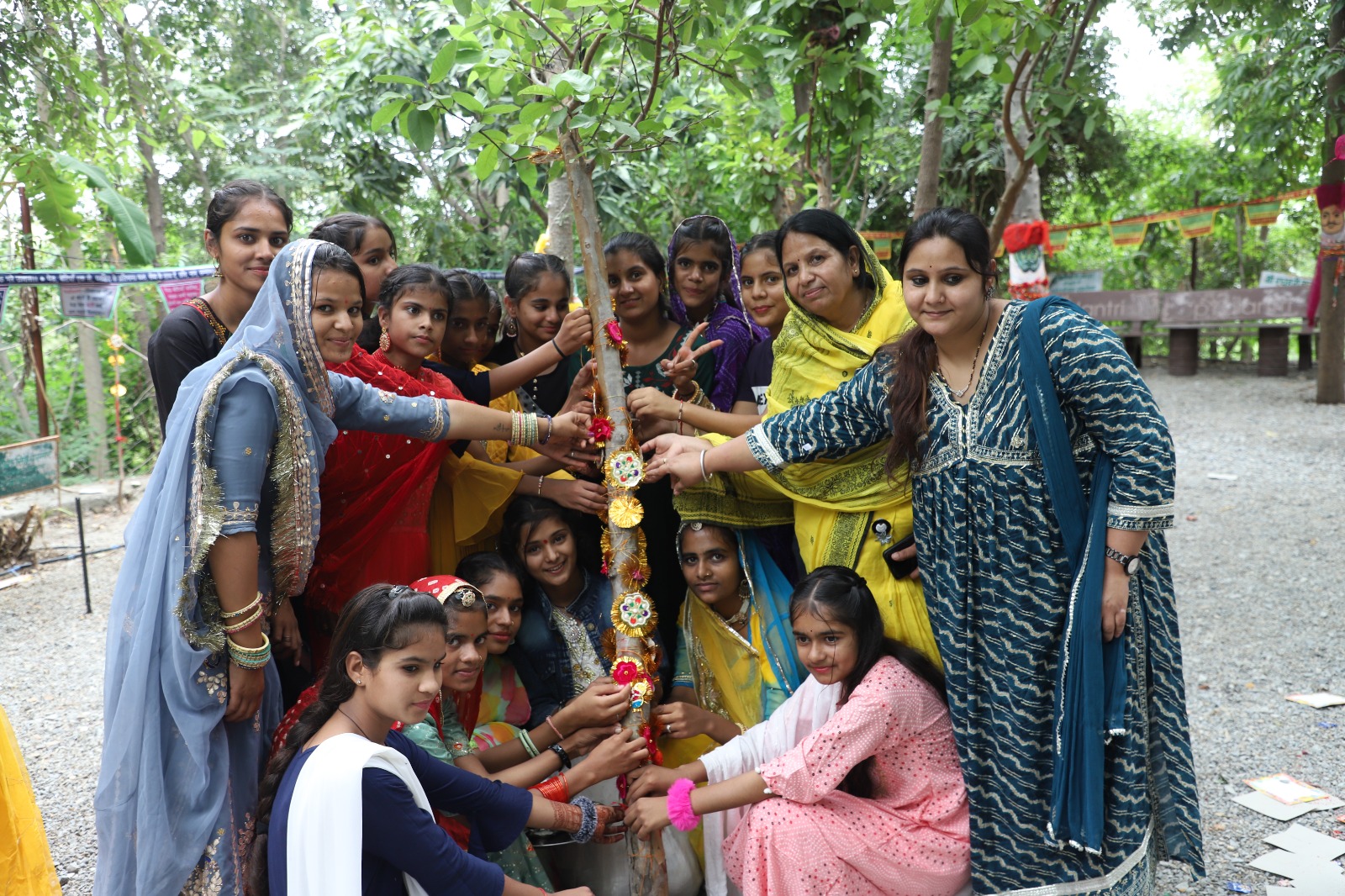 इस वर्ष जन्मी 40 नवजात बच्चियों का पूजन हुआ व माताओं का साड़ी ओढ़ाकर सम्मान किया गया। फिर उनके नाम से पौधे लगाए। बालिकाओं ने पेड़ों के राखियां बांधकर पर्यावरण संरक्षण का संदेश दिया।