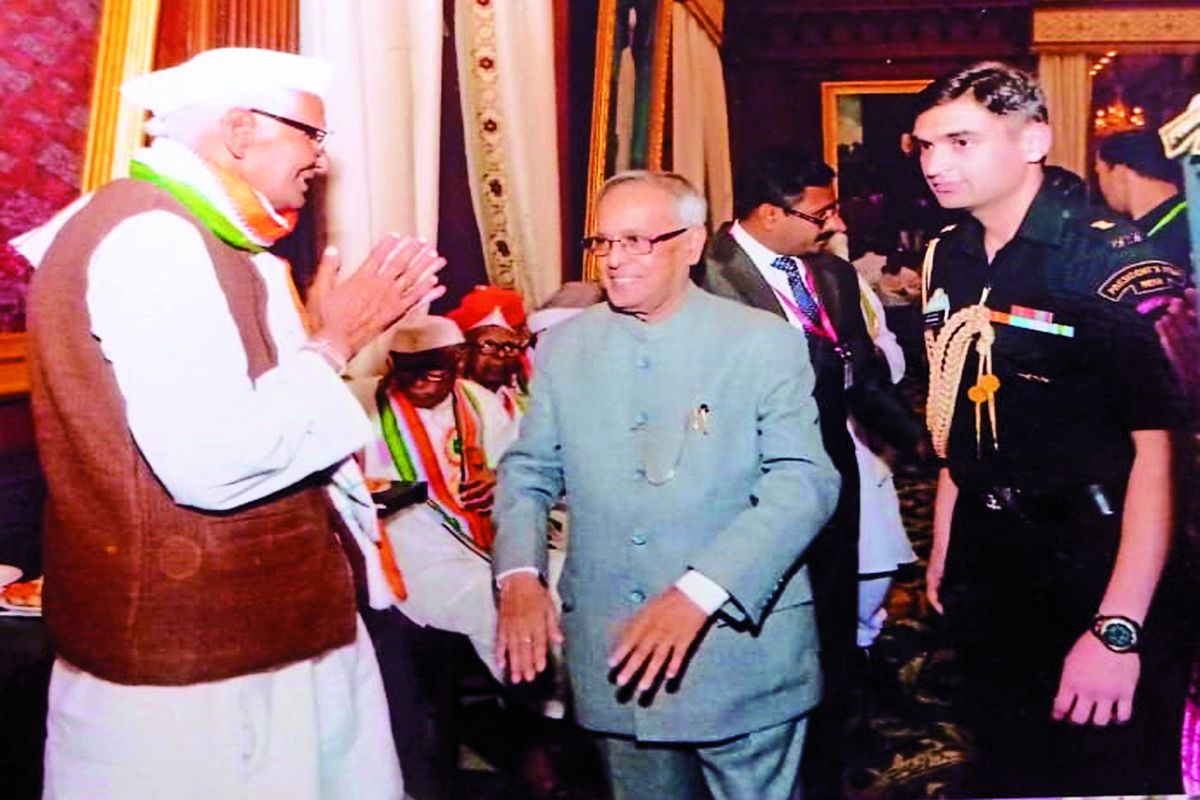 राष्ट्रपति प्रणव मुखर्जी से सम्मान लेते स्तवंत्रता सैनानी सोमटिया (फाइल फोटो)