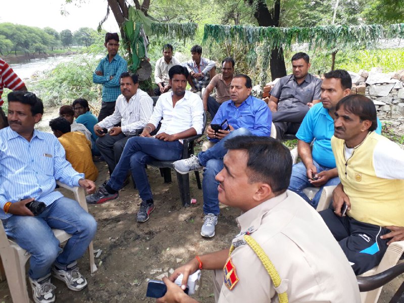गोमती नदी के छापरखेड़ी पुल पर महिला के बहने पर मौके पर बैठे एसडीएम, थानेदार व अन्य।
