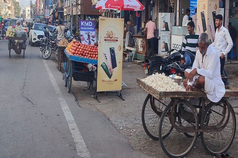 राजसमंद के मुख्य मार्ग पर लगे ठेले।