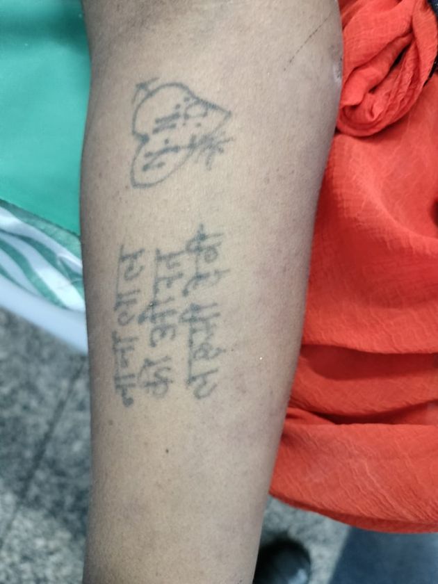 मृतका तथा उसके हाथ पर लिखा हुआ नाम। देलवाड़ा