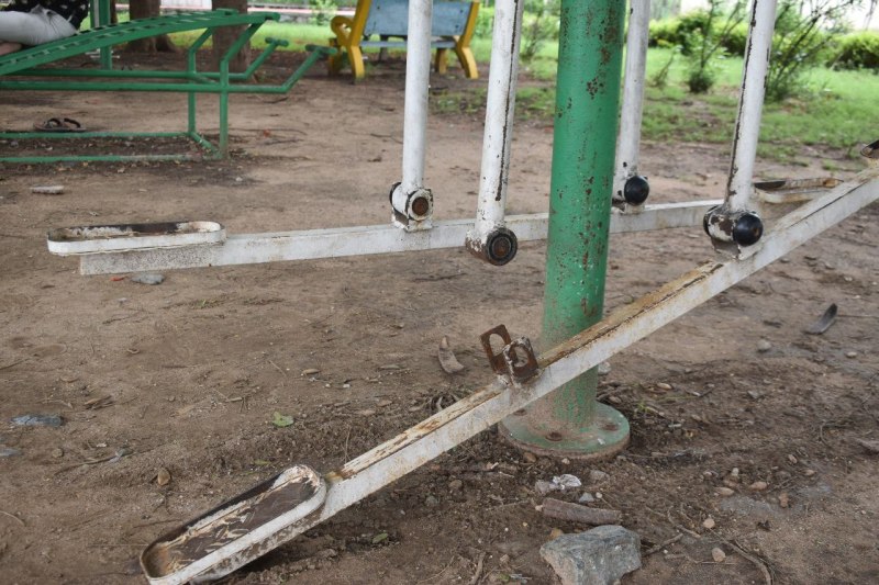 राजसमंद के इरिगेशन पाल पर क्षतिग्रस्त ओपन जिम उपकरण