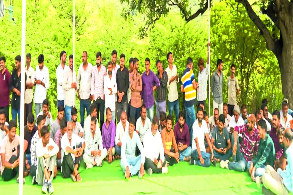 नेगडिय़ा टोल के पास धरने पर बैठे ग्रामीण।