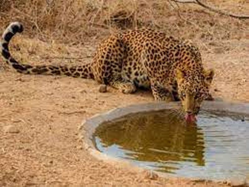 राजसमंद के कुंभलगढ़ क्षेत्र में पानी पीता पैंथर। (फाइल फोटो)