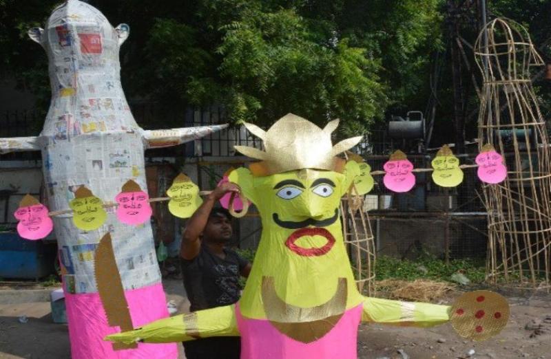 रामपुर। बढ़ रही महंगाई की मार अब रावण के पुतले पर भी पड़ रही है। लंबा चौड़ा रावण का पुतला महंगाई की वजह से बौना हो गया। इतना ही नहीं रावण का पुतला बनाने वाले कारीगर अब नहीं चाहते कि वह रावण का पुतला बनाएं।