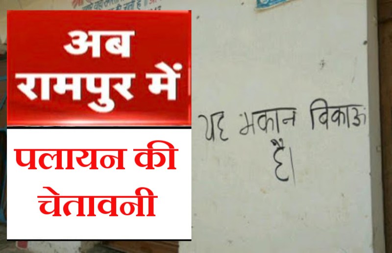 रामपुर. अलीगढ़ के टप्पल के बाद अब रामपुर के टंडोला में लोगों ने पलायन (Exodus) की चेतावनी दी है। समुदाय विशेष के करीब दर्जनभर घरों के बाहर 'यह मकान बिकाऊ है' लिख दिया गया है। इसकी जानकारी मिलते ही जिला प्रशासन में हड़कंप मच गया। सूचना मिलते ही मौके पर पुलिस पहुंच गई और लोगों को समझाते हुए मामले में कार्रवाई का आश्वासन दिया।