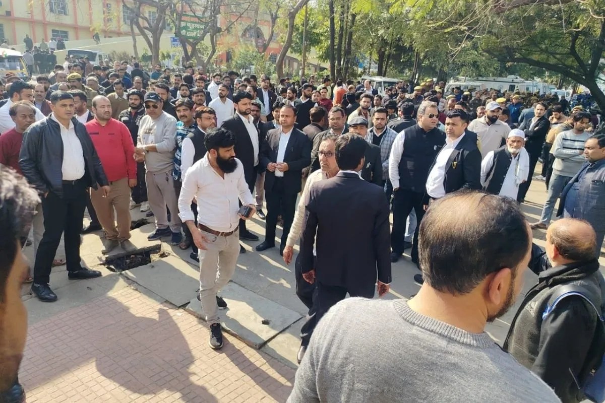 जिला पंचायत परिसर में वकील की गोली मारकर हत्या के बाद साथी वकीलों ने किया प्रदर्शन, PC- X