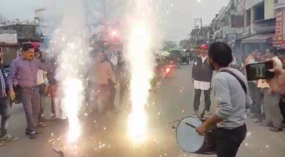 हिंदू युवा वाहिनी के कार्यकर्ताओं ने बांटी मिठाई